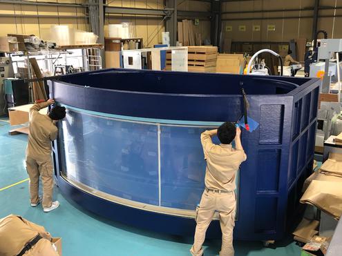 2019年夏、動物・海洋・自然環境分野に有能な人材を輩出しておられる専門学校様の校舎リニューアルに際し、エントランスに大型水槽を設置させていただきました。