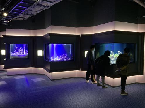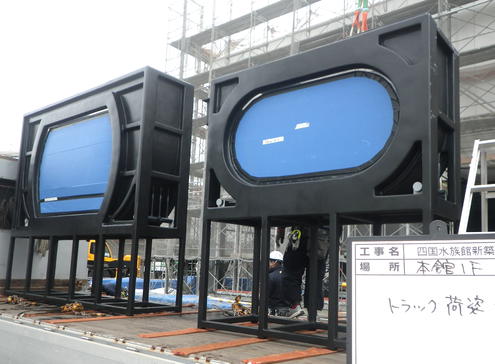 弊社施工内容:ユニット水槽(アクリル製・FRP製)32基水槽設置及び水処理設備、最大水槽:50トン